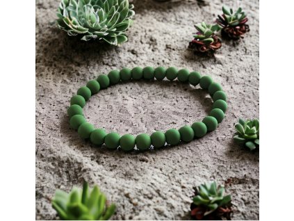 Náramek je ze skleněných korálků se speciální povrchovou úpravou