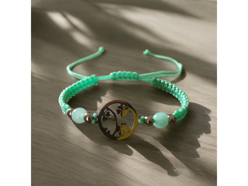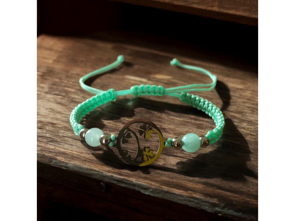 Shamballa náramek čtyřlístky s minerálem Peruanským amazonitem.
