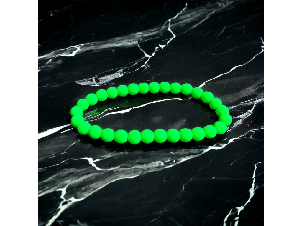 Neonové náramky vyrobené ze skleněných korálků. Náramky svítí pod UV lampou.