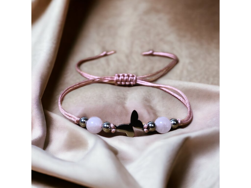 Náramek je ze starorůžové šňůrky, ocele a minerálu Růženín.