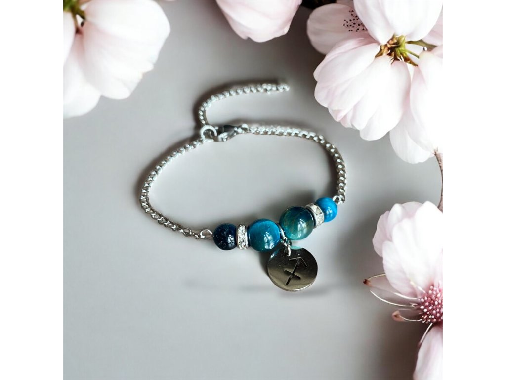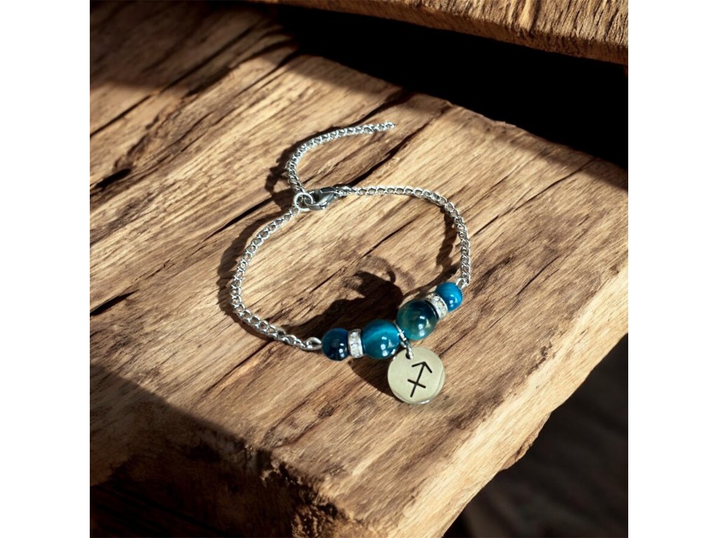 Elegantní náramek z kvalitní chirurgické ocele, doplněný přívěskem znamení Střelce a minerálem modré tygří oko. Tento kámen přináší klid, soustředění a duševní rovnováhu. Pomáhá utišit rozptýlenou mysl, posiluje vnitřní jistotu a odvahu jít vlastní cestou. Modré tygří oko je také kamenem pravdy a vhledu – podporuje jasnou komunikaci a chrání před negativní energií.
